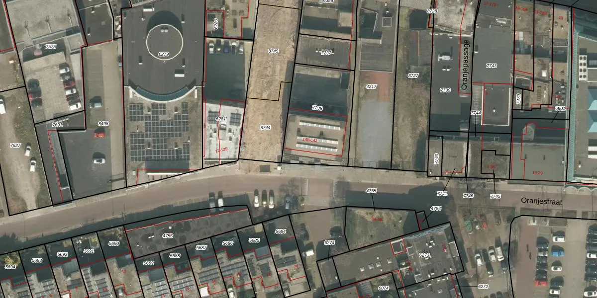 Het perceel waarop Oranjestraat 14-C staat heeft een oppervlakte van 685 m². Dit is een groot perceel. De perceeloppervlakte wordt geregistreerd door het Kadaster. Gedetailleerde informatie over de maten van dit perceel kunt u vinden in het rapport Kadastrale kaart met maatvoering van Oranjestraat 14-C.