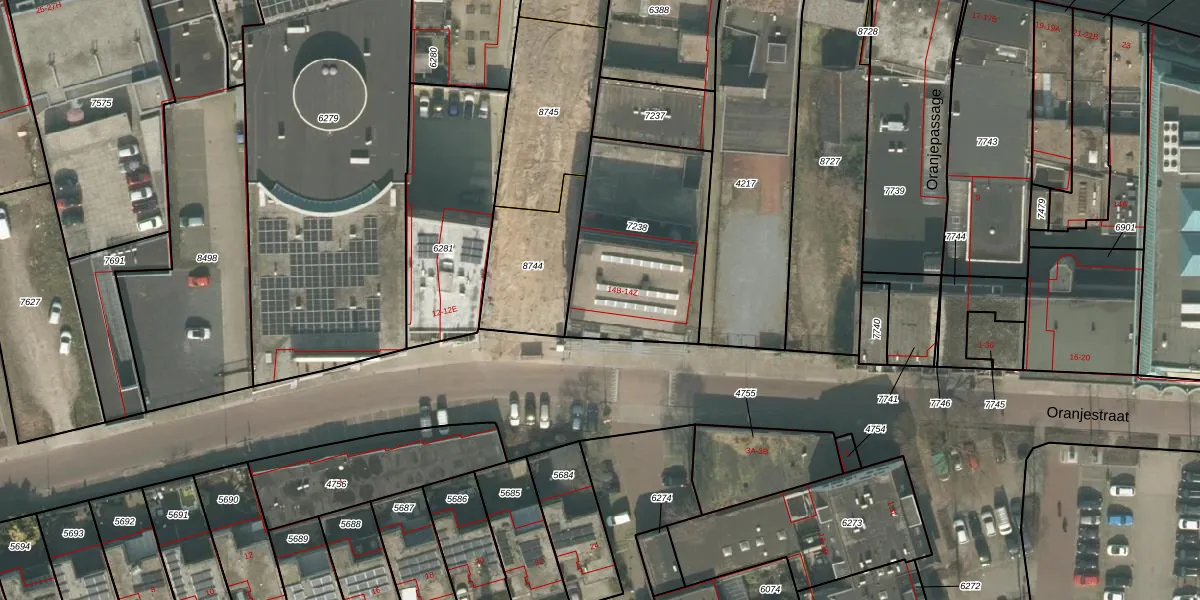 Het perceel waarop Oranjestraat 14-G staat heeft een oppervlakte van 685 m². Dit is een groot perceel. De perceeloppervlakte wordt geregistreerd door het Kadaster. Gedetailleerde informatie over de maten van dit perceel kunt u vinden in het rapport Kadastrale kaart met maatvoering van Oranjestraat 14-G.