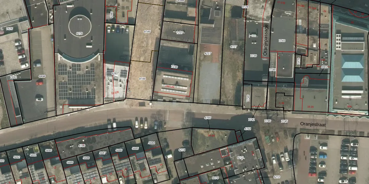 Het perceel waarop Oranjestraat 14-K staat heeft een oppervlakte van 685 m². Dit is een groot perceel. De perceeloppervlakte wordt geregistreerd door het Kadaster. Gedetailleerde informatie over de maten van dit perceel kunt u vinden in het rapport Kadastrale kaart met maatvoering van Oranjestraat 14-K.