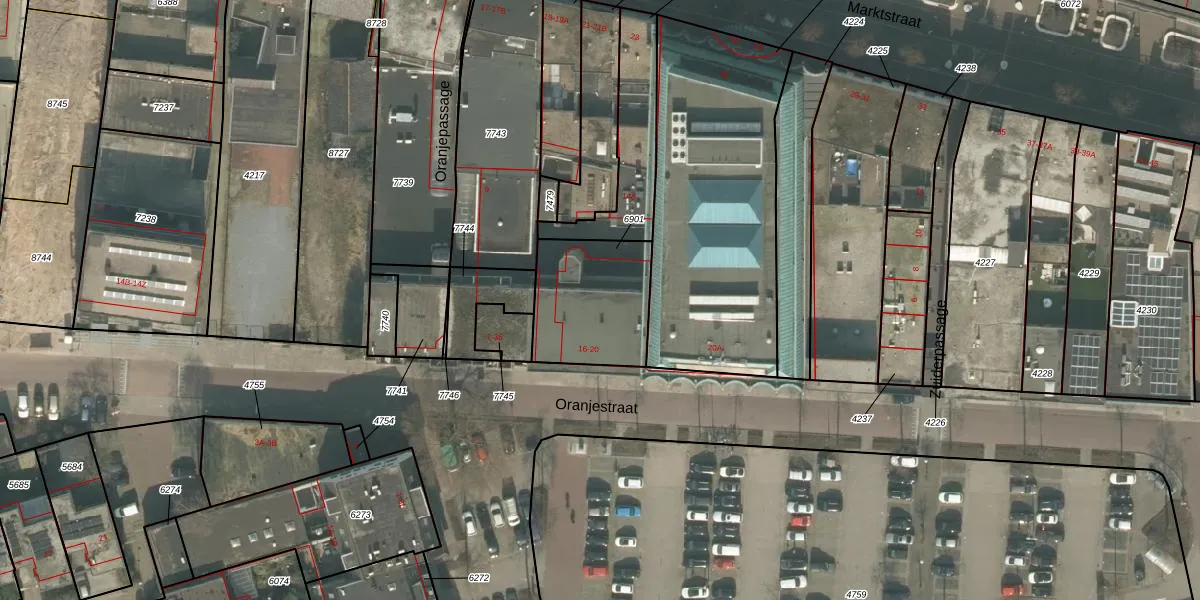 Het perceel waarop Oranjestraat 16-D staat heeft een oppervlakte van 397 m². Dit is een groot perceel. De perceeloppervlakte wordt geregistreerd door het Kadaster. Gedetailleerde informatie over de maten van dit perceel kunt u vinden in het rapport Kadastrale kaart met maatvoering van Oranjestraat 16-D.