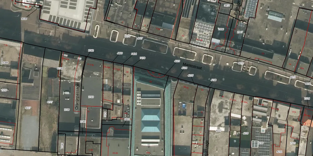 Het perceel waarop Oranjestraat 20-A staat heeft een oppervlakte van 1215 m². Dit is een zeer groot perceel. De perceeloppervlakte wordt geregistreerd door het Kadaster. Gedetailleerde informatie over de maten van dit perceel kunt u vinden in het rapport Kadastrale kaart met maatvoering van Oranjestraat 20-A.