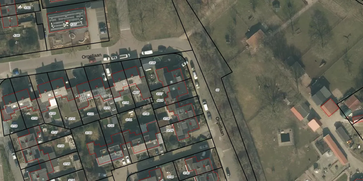 Orgellaan 33 is gelegen op kadastraal perceel UDN00B3727. Deze kadastrale aanduiding is uniek en wordt gebruikt door het Kadaster om eigendomsrechten en andere zakelijke rechten vast te leggen. Het perceel maakt onderdeel uit van de kadastrale gemeente Uden.