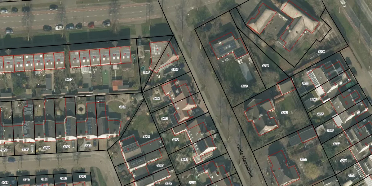 Oude Maasstraat 1 is gelegen op kadastraal perceel UDN00I3070. Deze kadastrale aanduiding is uniek en wordt gebruikt door het Kadaster om eigendomsrechten en andere zakelijke rechten vast te leggen. Het perceel maakt onderdeel uit van de kadastrale gemeente Uden.