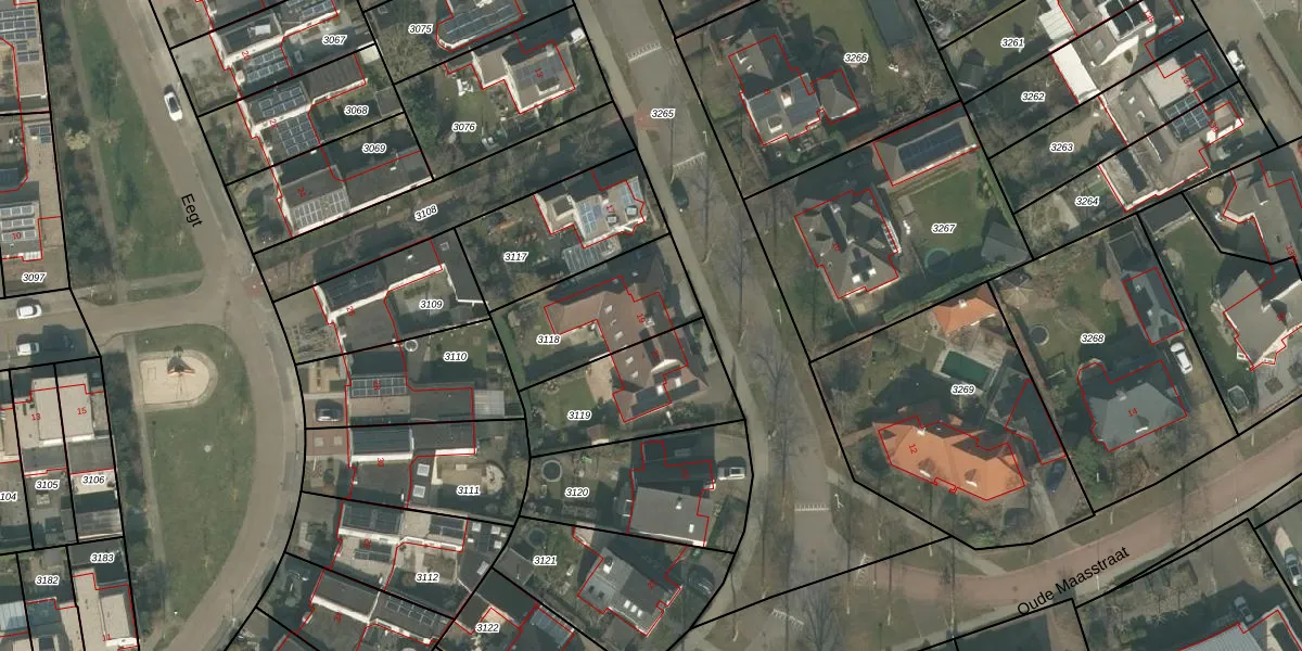 Het perceel waarop Oude Maasstraat 19 staat heeft een oppervlakte van 408 m². Dit is een groot perceel. De perceeloppervlakte wordt geregistreerd door het Kadaster. Gedetailleerde informatie over de maten van dit perceel kunt u vinden in het rapport Kadastrale kaart met maatvoering van Oude Maasstraat 19.