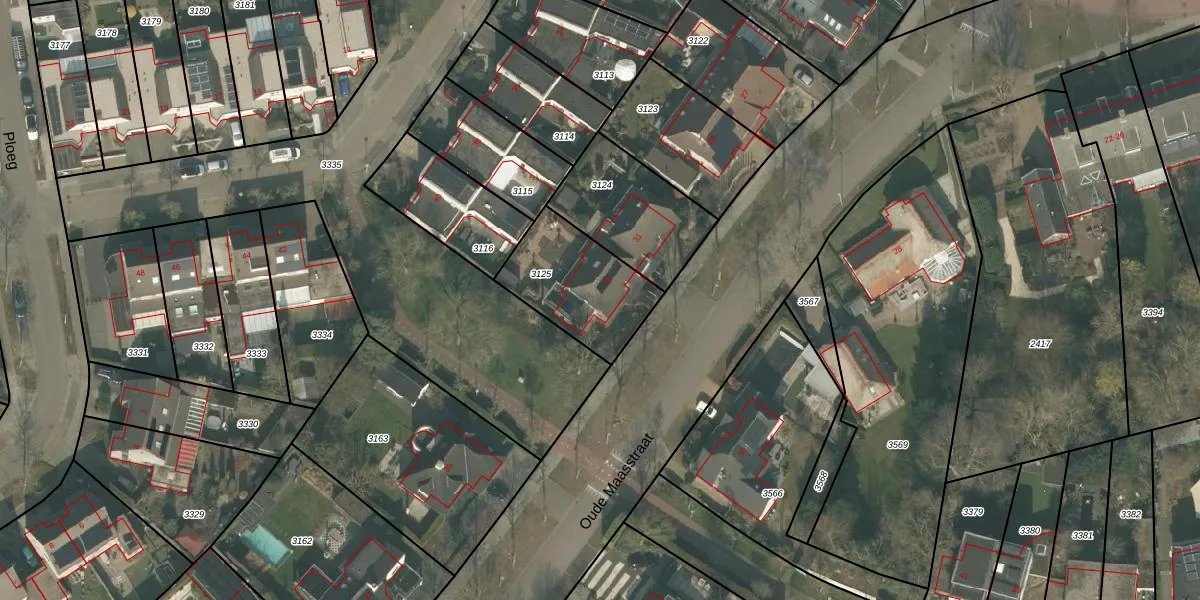 Oude Maasstraat 33 is gelegen op kadastraal perceel UDN00I3125. Deze kadastrale aanduiding is uniek en wordt gebruikt door het Kadaster om eigendomsrechten en andere zakelijke rechten vast te leggen. Het perceel maakt onderdeel uit van de kadastrale gemeente Uden.