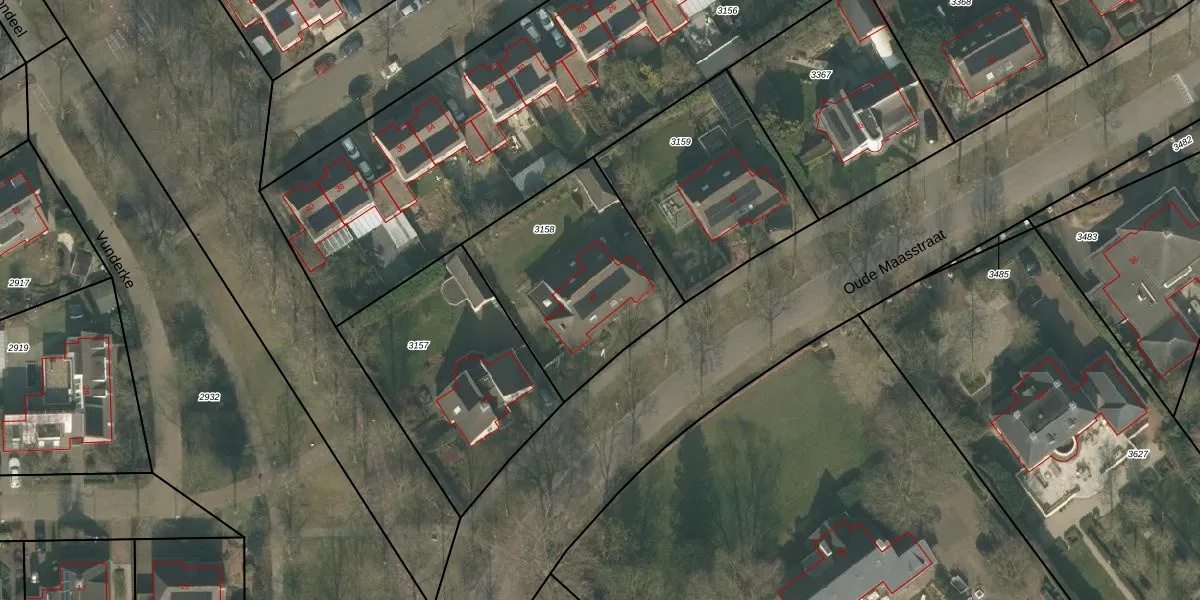 Oude Maasstraat 49 is gelegen op kadastraal perceel UDN00I3158. Deze kadastrale aanduiding is uniek en wordt gebruikt door het Kadaster om eigendomsrechten en andere zakelijke rechten vast te leggen. Het perceel maakt onderdeel uit van de kadastrale gemeente Uden.