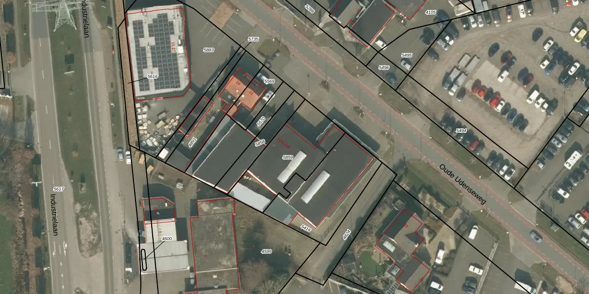 Oude Udenseweg 21-A is gelegen op kadastraal perceel UDN00F5859. Deze kadastrale aanduiding is uniek en wordt gebruikt door het Kadaster om eigendomsrechten en andere zakelijke rechten vast te leggen. Het perceel maakt onderdeel uit van de kadastrale gemeente Uden.