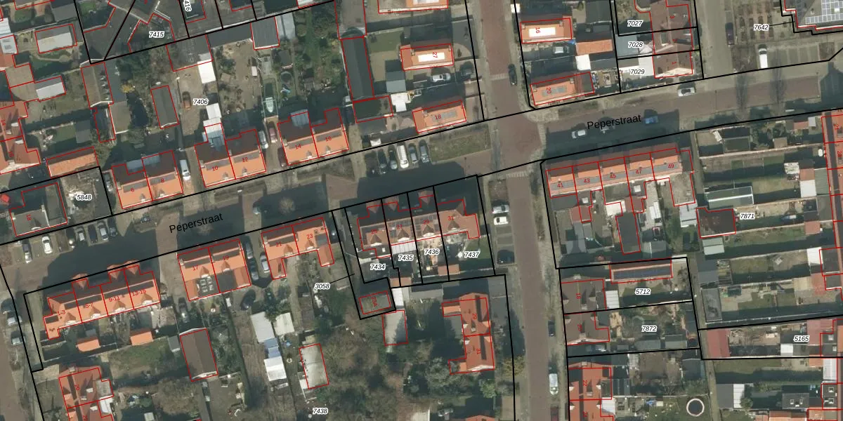 Peperstraat 29 is gelegen op kadastraal perceel UDN00M7436. Deze kadastrale aanduiding is uniek en wordt gebruikt door het Kadaster om eigendomsrechten en andere zakelijke rechten vast te leggen. Het perceel maakt onderdeel uit van de kadastrale gemeente Uden.