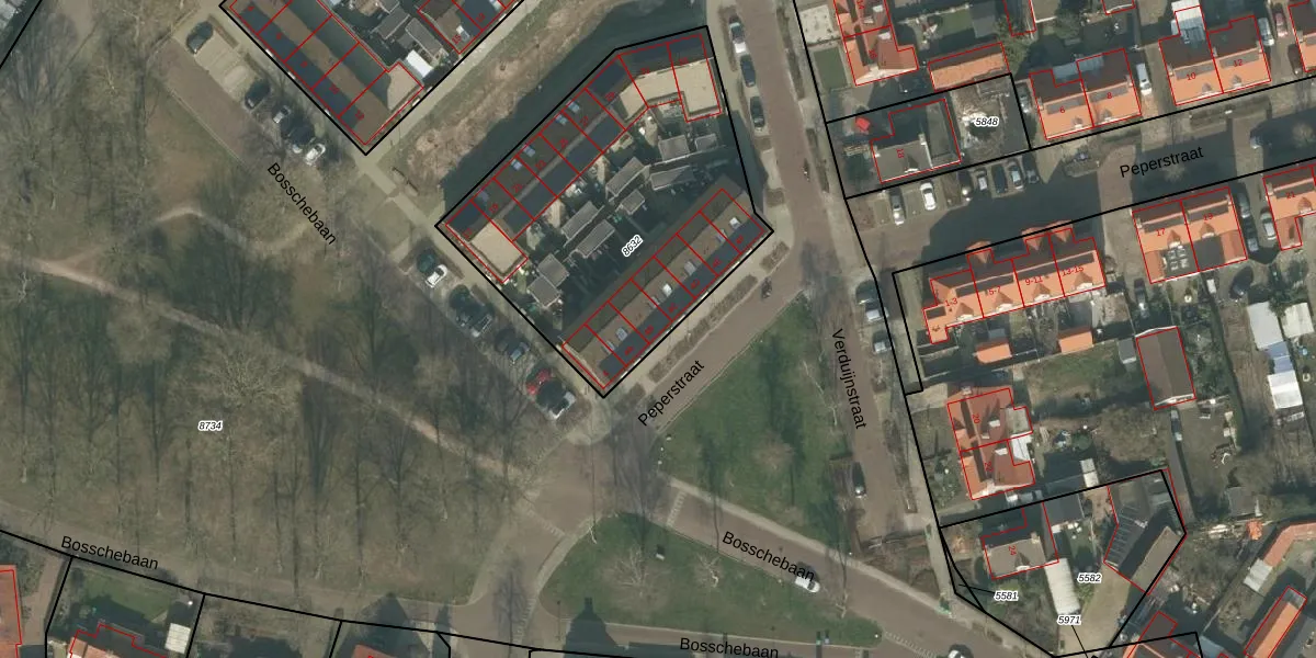 Het perceel waarop Peperstraat 4-B staat heeft een oppervlakte van 1565 m². Dit is een zeer groot perceel. De perceeloppervlakte wordt geregistreerd door het Kadaster. Gedetailleerde informatie over de maten van dit perceel kunt u vinden in het rapport Kadastrale kaart met maatvoering van Peperstraat 4-B.