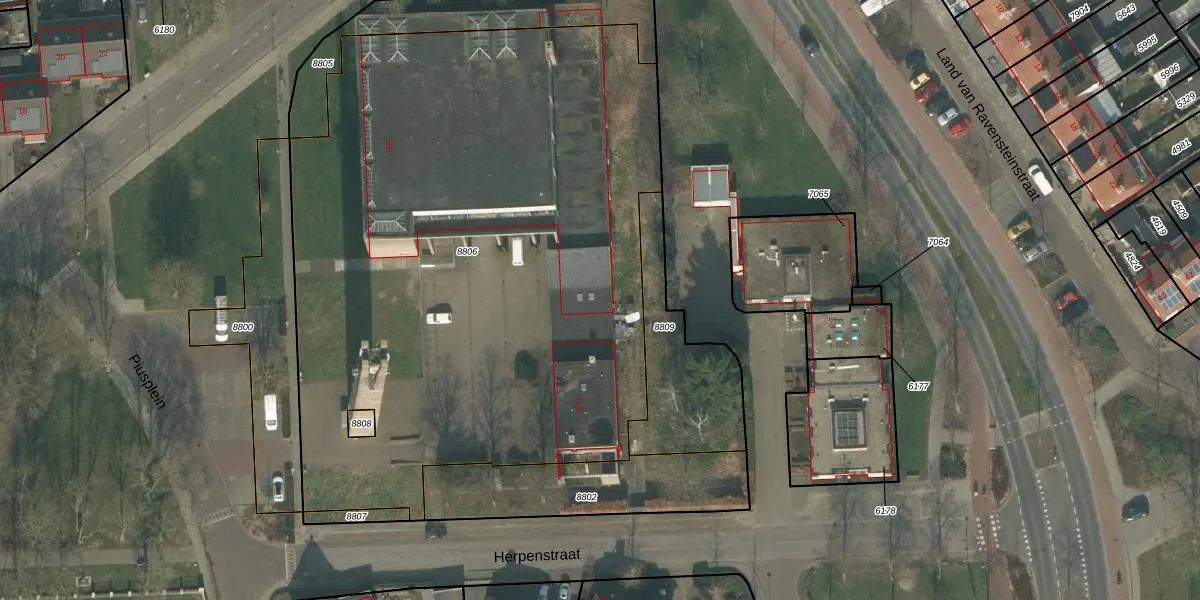 Het perceel waarop Piusplein 127 staat heeft een oppervlakte van 4264 m². Dit is een zeer groot perceel. De perceeloppervlakte wordt geregistreerd door het Kadaster. Gedetailleerde informatie over de maten van dit perceel kunt u vinden in het rapport Kadastrale kaart met maatvoering van Piusplein 127.