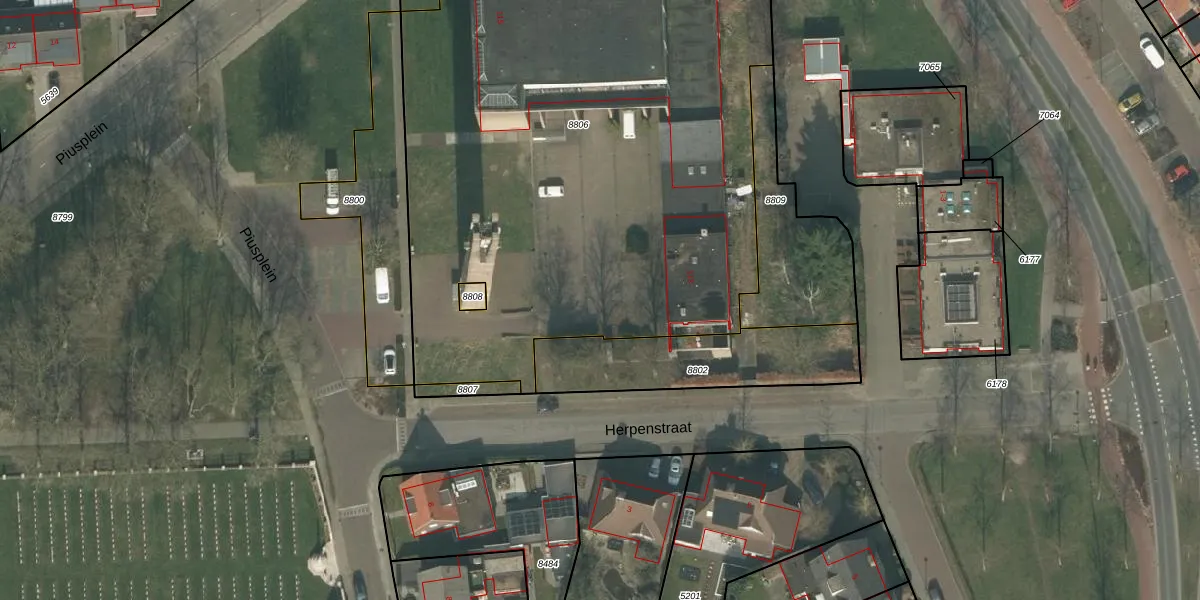 Het perceel waarop Piusplein 137 staat heeft een oppervlakte van 4264 m². Dit is een zeer groot perceel. De perceeloppervlakte wordt geregistreerd door het Kadaster. Gedetailleerde informatie over de maten van dit perceel kunt u vinden in het rapport Kadastrale kaart met maatvoering van Piusplein 137.