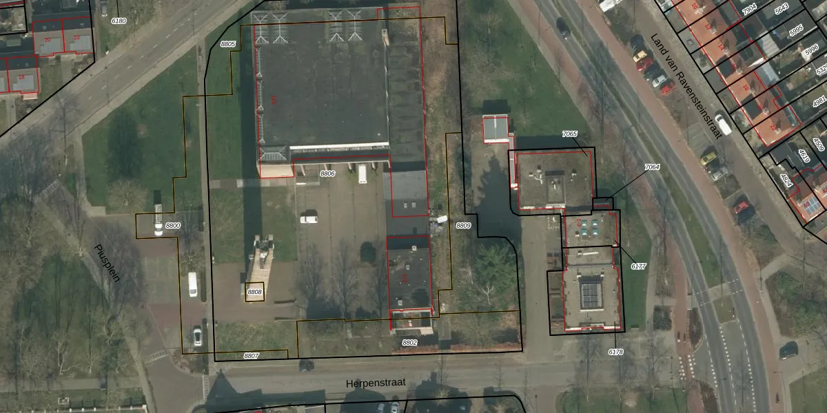 Het perceel waarop Piusplein 143 staat heeft een oppervlakte van 4264 m². Dit is een zeer groot perceel. De perceeloppervlakte wordt geregistreerd door het Kadaster. Gedetailleerde informatie over de maten van dit perceel kunt u vinden in het rapport Kadastrale kaart met maatvoering van Piusplein 143.