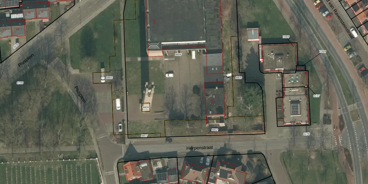 Het perceel waarop Piusplein 157 staat heeft een oppervlakte van 4264 m². Dit is een zeer groot perceel. De perceeloppervlakte wordt geregistreerd door het Kadaster. Gedetailleerde informatie over de maten van dit perceel kunt u vinden in het rapport Kadastrale kaart met maatvoering van Piusplein 157.
