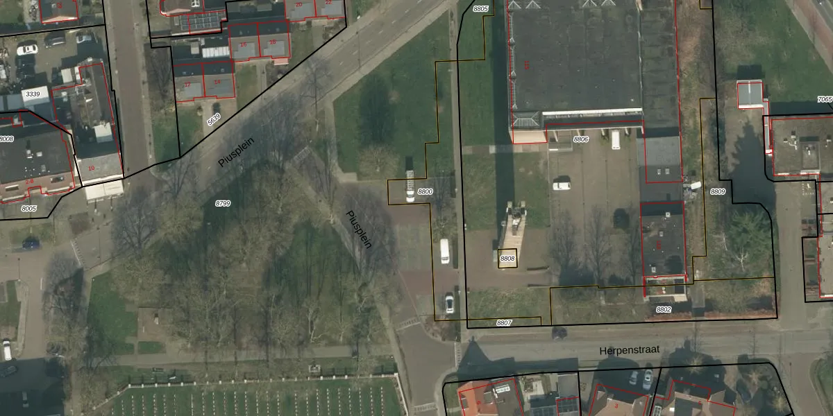 Het perceel waarop Piusplein 167 staat heeft een oppervlakte van 4,4 ha. Dit is een zeer groot perceel. De perceeloppervlakte wordt geregistreerd door het Kadaster. Gedetailleerde informatie over de maten van dit perceel kunt u vinden in het rapport Kadastrale kaart met maatvoering van Piusplein 167.
