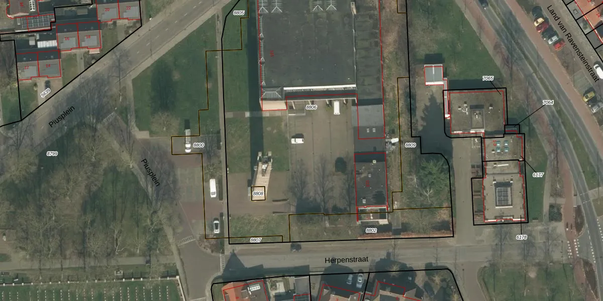 Het perceel waarop Piusplein 177 staat heeft een oppervlakte van 4264 m². Dit is een zeer groot perceel. De perceeloppervlakte wordt geregistreerd door het Kadaster. Gedetailleerde informatie over de maten van dit perceel kunt u vinden in het rapport Kadastrale kaart met maatvoering van Piusplein 177.