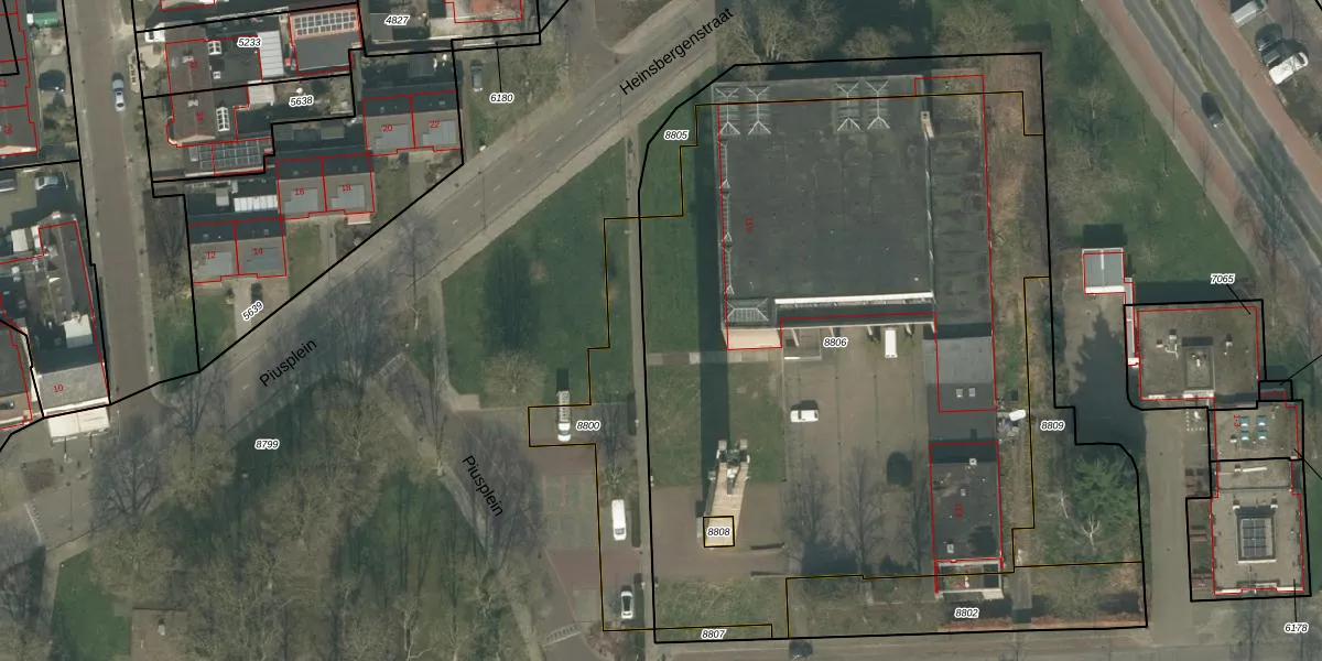 Het perceel waarop Piusplein 181 staat heeft een oppervlakte van 4264 m². Dit is een zeer groot perceel. De perceeloppervlakte wordt geregistreerd door het Kadaster. Gedetailleerde informatie over de maten van dit perceel kunt u vinden in het rapport Kadastrale kaart met maatvoering van Piusplein 181.