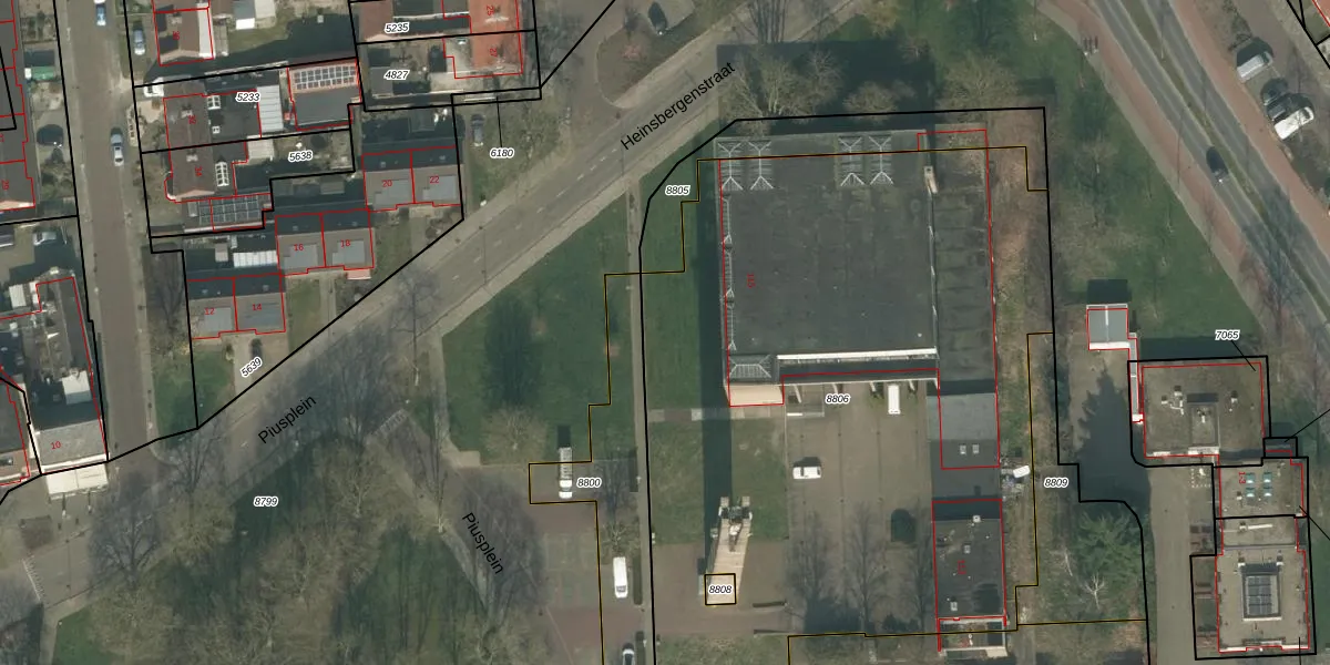 Het perceel waarop Piusplein 183 staat heeft een oppervlakte van 4264 m². Dit is een zeer groot perceel. De perceeloppervlakte wordt geregistreerd door het Kadaster. Gedetailleerde informatie over de maten van dit perceel kunt u vinden in het rapport Kadastrale kaart met maatvoering van Piusplein 183.
