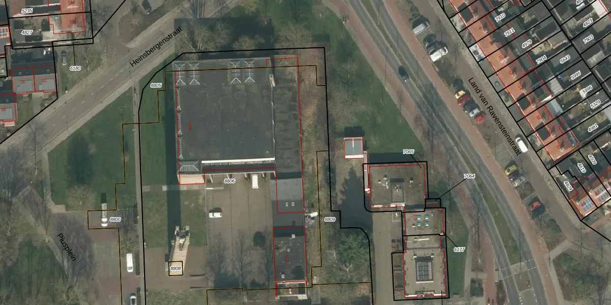 Het perceel waarop Piusplein 245 staat heeft een oppervlakte van 4264 m². Dit is een zeer groot perceel. De perceeloppervlakte wordt geregistreerd door het Kadaster. Gedetailleerde informatie over de maten van dit perceel kunt u vinden in het rapport Kadastrale kaart met maatvoering van Piusplein 245.
