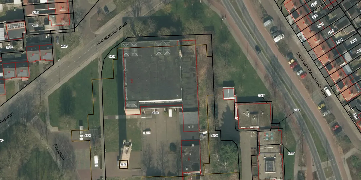 Het perceel waarop Piusplein 249 staat heeft een oppervlakte van 4264 m². Dit is een zeer groot perceel. De perceeloppervlakte wordt geregistreerd door het Kadaster. Gedetailleerde informatie over de maten van dit perceel kunt u vinden in het rapport Kadastrale kaart met maatvoering van Piusplein 249.