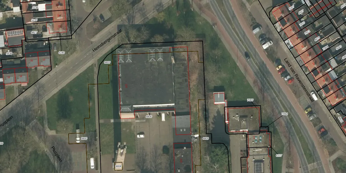 Het perceel waarop Piusplein 251 staat heeft een oppervlakte van 4264 m². Dit is een zeer groot perceel. De perceeloppervlakte wordt geregistreerd door het Kadaster. Gedetailleerde informatie over de maten van dit perceel kunt u vinden in het rapport Kadastrale kaart met maatvoering van Piusplein 251.