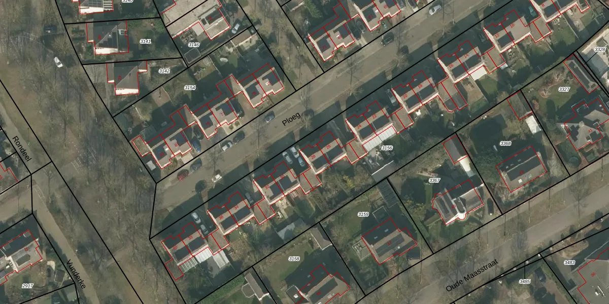 Het perceel waarop Ploeg 28 staat heeft een oppervlakte van 4295 m². Dit is een zeer groot perceel. De perceeloppervlakte wordt geregistreerd door het Kadaster. Gedetailleerde informatie over de maten van dit perceel kunt u vinden in het rapport Kadastrale kaart met maatvoering van Ploeg 28.
