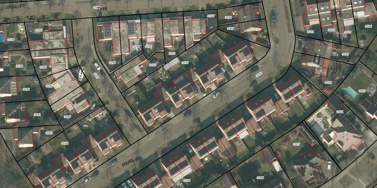 Het perceel waarop Ploeg 65 staat heeft een oppervlakte van 1844 m². Dit is een zeer groot perceel. De perceeloppervlakte wordt geregistreerd door het Kadaster. Gedetailleerde informatie over de maten van dit perceel kunt u vinden in het rapport Kadastrale kaart met maatvoering van Ploeg 65.
