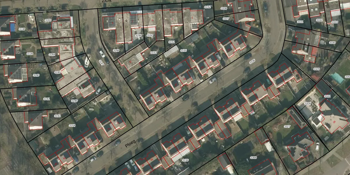 Het perceel waarop Ploeg 67 staat heeft een oppervlakte van 1844 m². Dit is een zeer groot perceel. De perceeloppervlakte wordt geregistreerd door het Kadaster. Gedetailleerde informatie over de maten van dit perceel kunt u vinden in het rapport Kadastrale kaart met maatvoering van Ploeg 67.