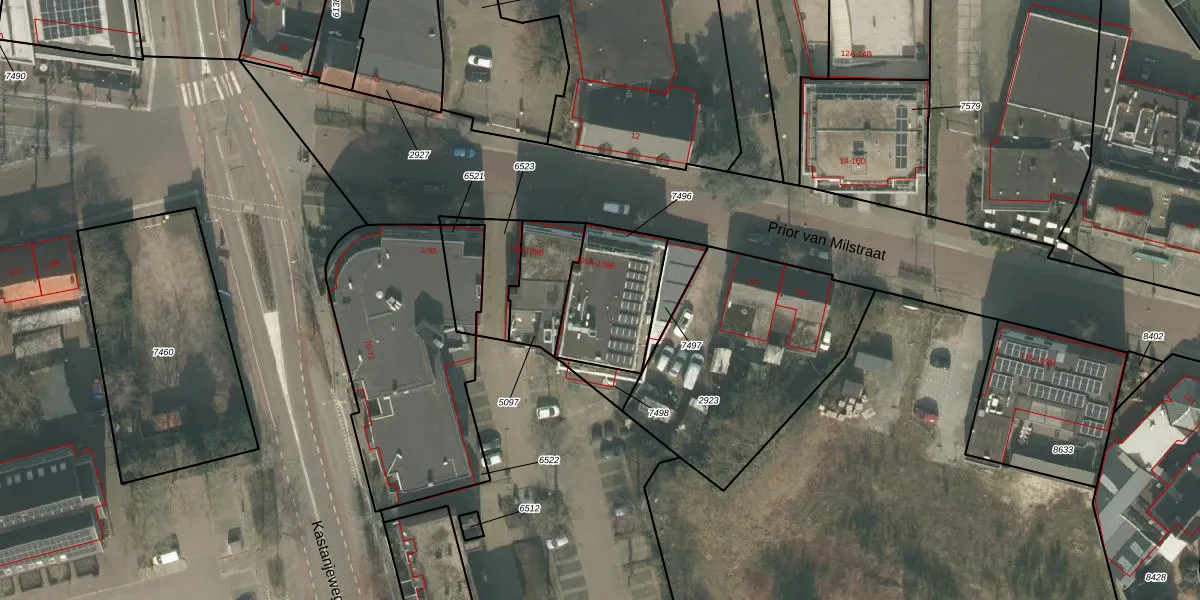 Prior van Milstraat 105-A is gelegen op kadastraal perceel UDN00M7496. Deze kadastrale aanduiding is uniek en wordt gebruikt door het Kadaster om eigendomsrechten en andere zakelijke rechten vast te leggen. Het perceel maakt onderdeel uit van de kadastrale gemeente Uden.