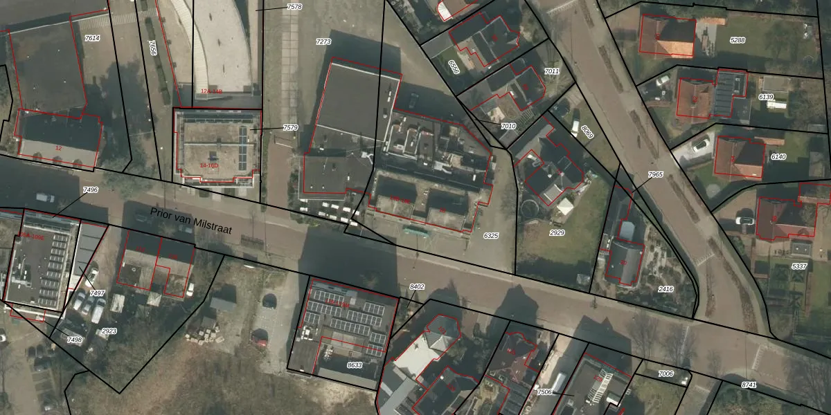 Het perceel waarop Prior van Milstraat 18 staat heeft een oppervlakte van 1458 m². Dit is een zeer groot perceel. De perceeloppervlakte wordt geregistreerd door het Kadaster. Gedetailleerde informatie over de maten van dit perceel kunt u vinden in het rapport Kadastrale kaart met maatvoering van Prior van Milstraat 18.