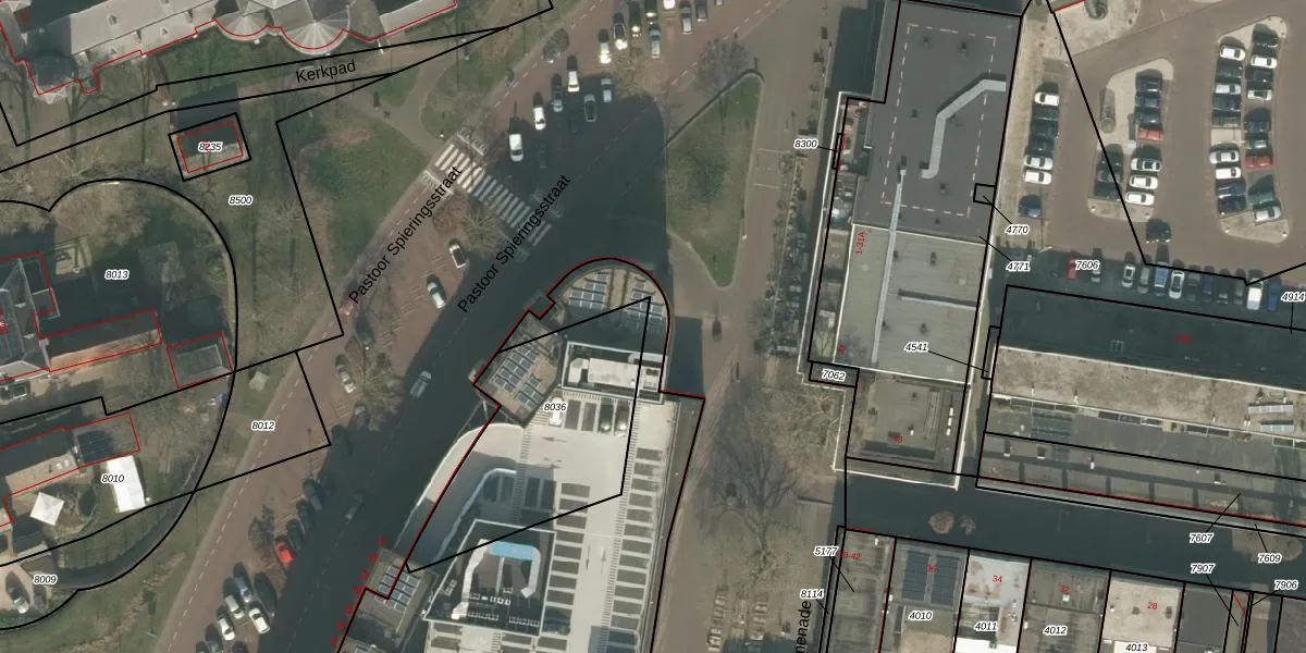 Het perceel waarop Promenade 63 staat heeft een oppervlakte van 4242 m². Dit is een zeer groot perceel. De perceeloppervlakte wordt geregistreerd door het Kadaster. Gedetailleerde informatie over de maten van dit perceel kunt u vinden in het rapport Kadastrale kaart met maatvoering van Promenade 63.