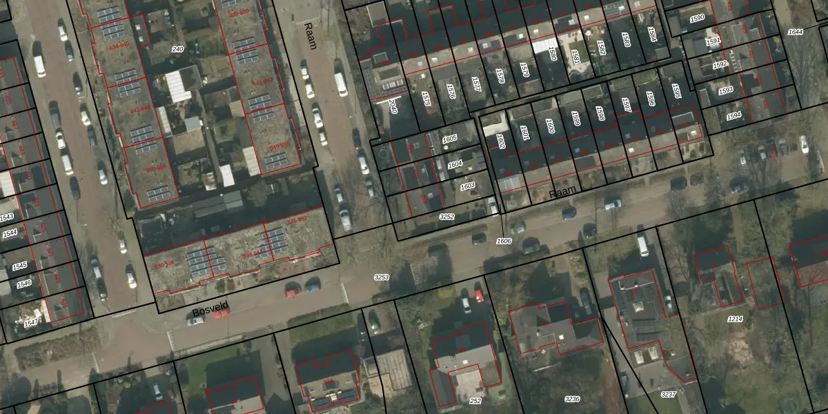 Het perceel waarop Raam 228 staat heeft een oppervlakte van 165 m². Dit is een middelgroot perceel. De perceeloppervlakte wordt geregistreerd door het Kadaster. Gedetailleerde informatie over de maten van dit perceel kunt u vinden in het rapport Kadastrale kaart met maatvoering van Raam 228.