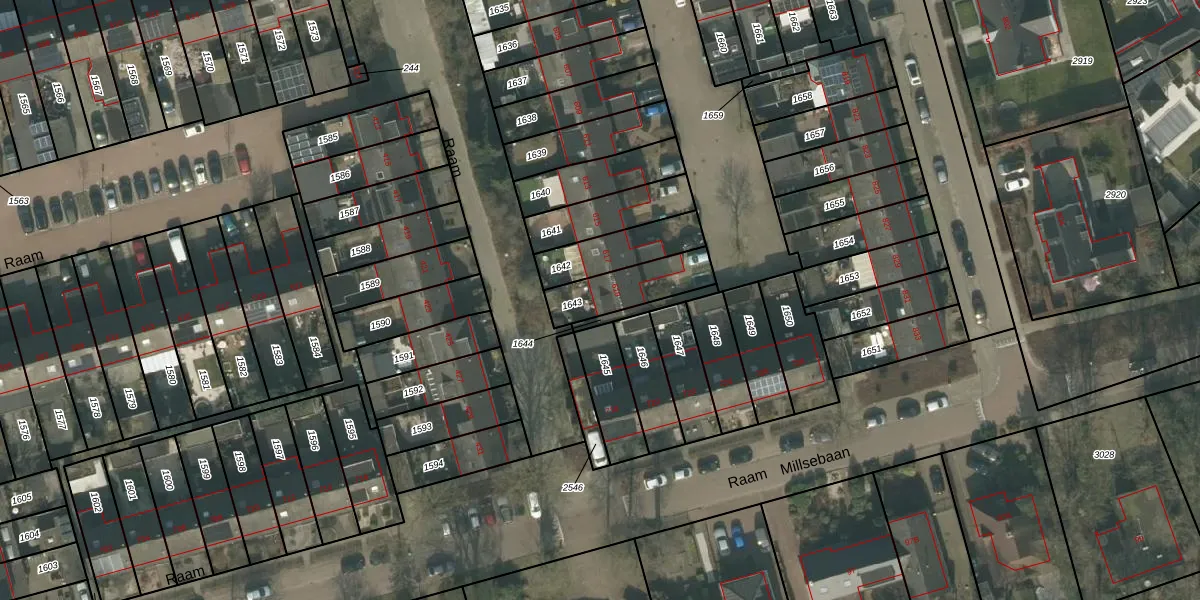 Het perceel waarop Raam 619 staat heeft een oppervlakte van 181 m². Dit is een middelgroot perceel. De perceeloppervlakte wordt geregistreerd door het Kadaster. Gedetailleerde informatie over de maten van dit perceel kunt u vinden in het rapport Kadastrale kaart met maatvoering van Raam 619.