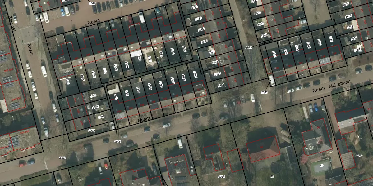 Het perceel waarop Raam 714 staat heeft een oppervlakte van 153 m². Dit is een middelgroot perceel. De perceeloppervlakte wordt geregistreerd door het Kadaster. Gedetailleerde informatie over de maten van dit perceel kunt u vinden in het rapport Kadastrale kaart met maatvoering van Raam 714.