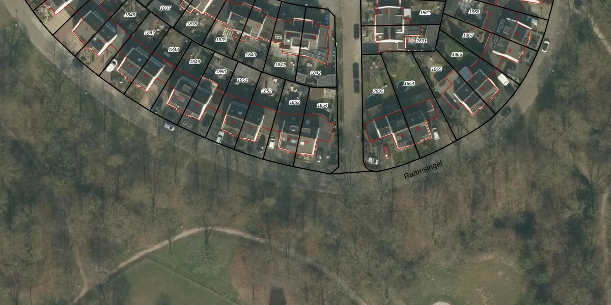 Het perceel waarop Raamsingel 24 staat heeft een oppervlakte van 327 m². Dit is een groot perceel. De perceeloppervlakte wordt geregistreerd door het Kadaster. Gedetailleerde informatie over de maten van dit perceel kunt u vinden in het rapport Kadastrale kaart met maatvoering van Raamsingel 24.