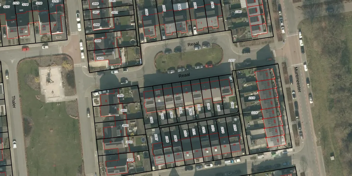 Het perceel waarop Reaal 12 staat heeft een oppervlakte van 122 m². Dit is een middelgroot perceel. De perceeloppervlakte wordt geregistreerd door het Kadaster. Gedetailleerde informatie over de maten van dit perceel kunt u vinden in het rapport Kadastrale kaart met maatvoering van Reaal 12.