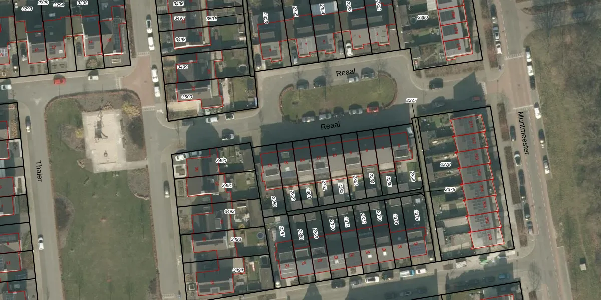 Gebruik de zoekbalk of klik op een perceel voor informatie over de adressen binnen dit perceel.