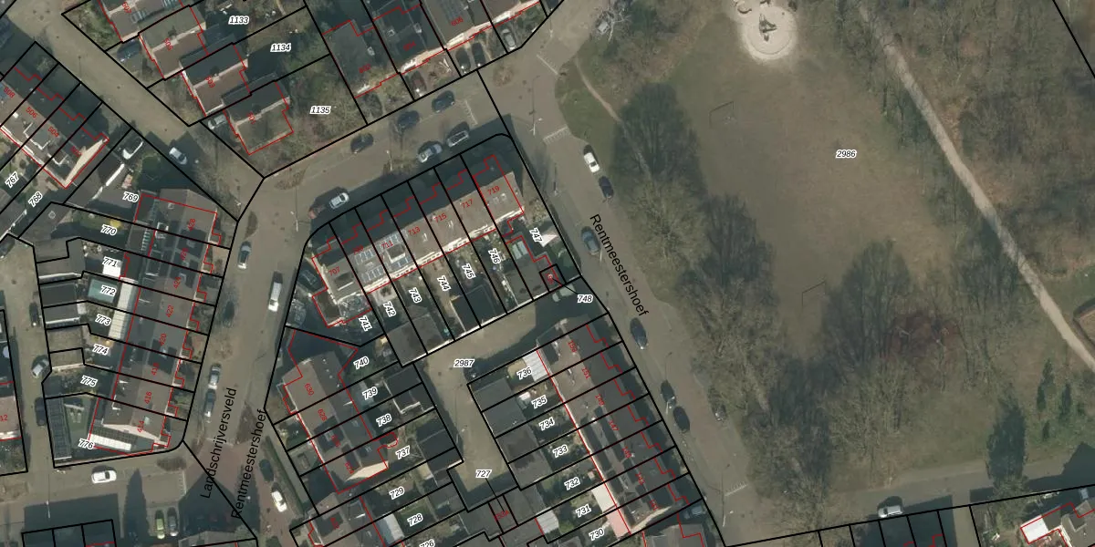 Het perceel waarop Rentmeestershoef 155 staat heeft een oppervlakte van 14 m². Dit is een klein perceel. De perceeloppervlakte wordt geregistreerd door het Kadaster. Gedetailleerde informatie over de maten van dit perceel kunt u vinden in het rapport Kadastrale kaart met maatvoering van Rentmeestershoef 155.