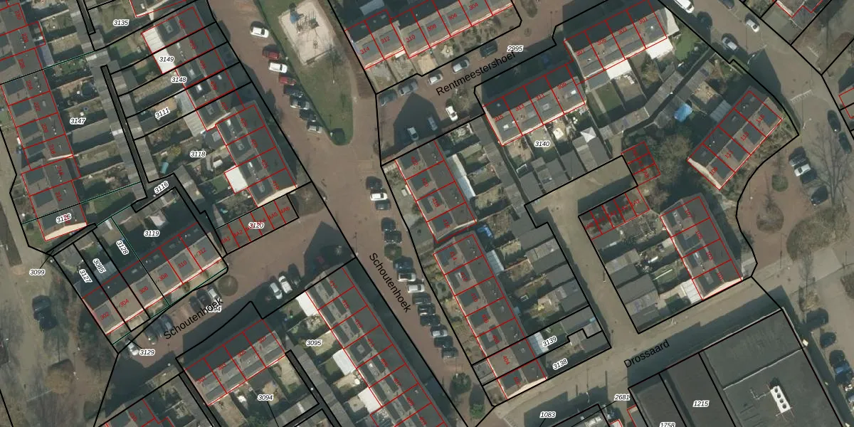 Het perceel waarop Rentmeestershoef 418 staat heeft een oppervlakte van 4735 m². Dit is een zeer groot perceel. De perceeloppervlakte wordt geregistreerd door het Kadaster. Gedetailleerde informatie over de maten van dit perceel kunt u vinden in het rapport Kadastrale kaart met maatvoering van Rentmeestershoef 418.