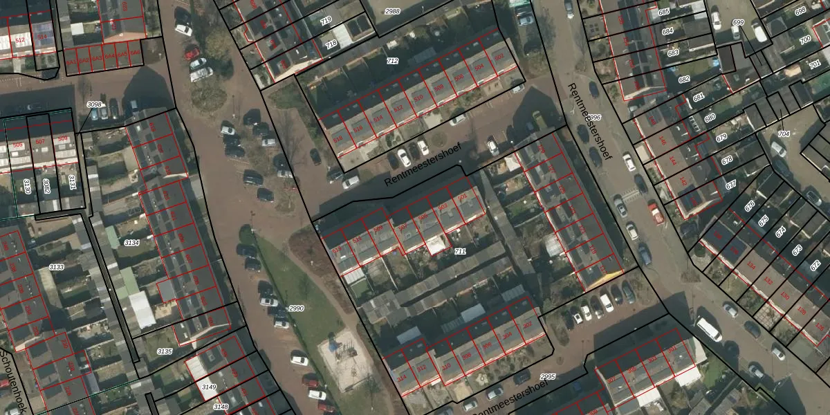 Het perceel waarop Rentmeestershoef 505 staat heeft een oppervlakte van 3045 m². Dit is een zeer groot perceel. De perceeloppervlakte wordt geregistreerd door het Kadaster. Gedetailleerde informatie over de maten van dit perceel kunt u vinden in het rapport Kadastrale kaart met maatvoering van Rentmeestershoef 505.