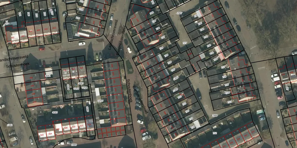 Gebruik de zoekbalk of klik op een perceel voor informatie over de adressen binnen dit perceel.