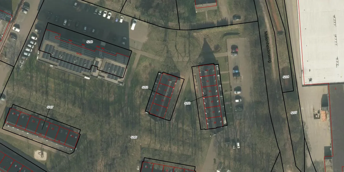 Het perceel waarop het adres ligt is UDN00-C-5251. De afkorting 'UDN00' staat voor kadastrale gemeente Uden. Het perceel is 394 m² groot. Dat is kleiner dan de gemiddelde perceeloppervlakte in Uden, dat op 3255,8 m² ligt. Het grootste perceel in de kadastrale gemeente is 1,06 km². Het kleinste perceel heeft een oppervlakte van 0 m². Op het perceel liggen in totaal 4 adressen. De huidige grenzen van het perceel zijn digitaal in de Basisregistratie Kadaster (BRK) geregistreerd op 11-09-2025.