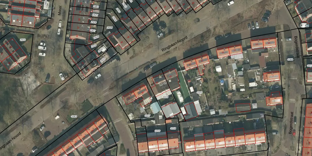 Het perceel waarop Ringbaan-Noord 41 staat heeft een oppervlakte van 360 m². Dit is een groot perceel. De perceeloppervlakte wordt geregistreerd door het Kadaster. Gedetailleerde informatie over de maten van dit perceel kunt u vinden in het rapport Kadastrale kaart met maatvoering van Ringbaan-Noord 41.