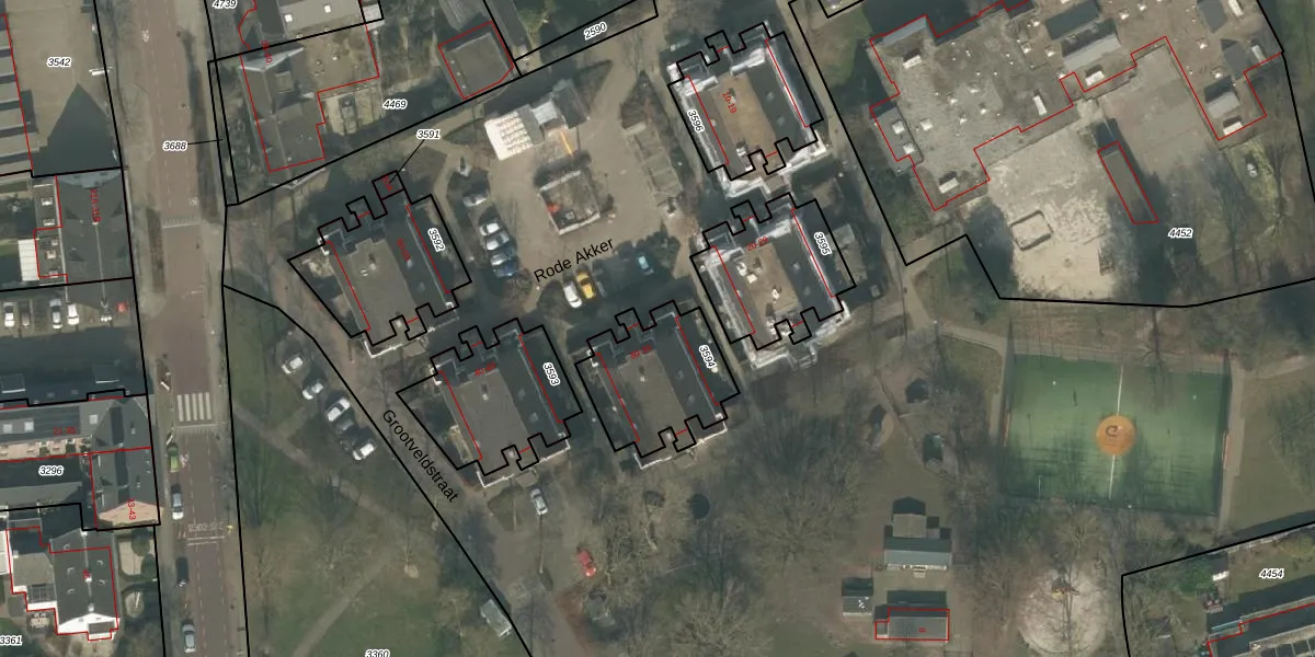 Het perceel waarop Rode Akker 30 staat heeft een oppervlakte van 365 m². Dit is een groot perceel. De perceeloppervlakte wordt geregistreerd door het Kadaster. Gedetailleerde informatie over de maten van dit perceel kunt u vinden in het rapport Kadastrale kaart met maatvoering van Rode Akker 30.