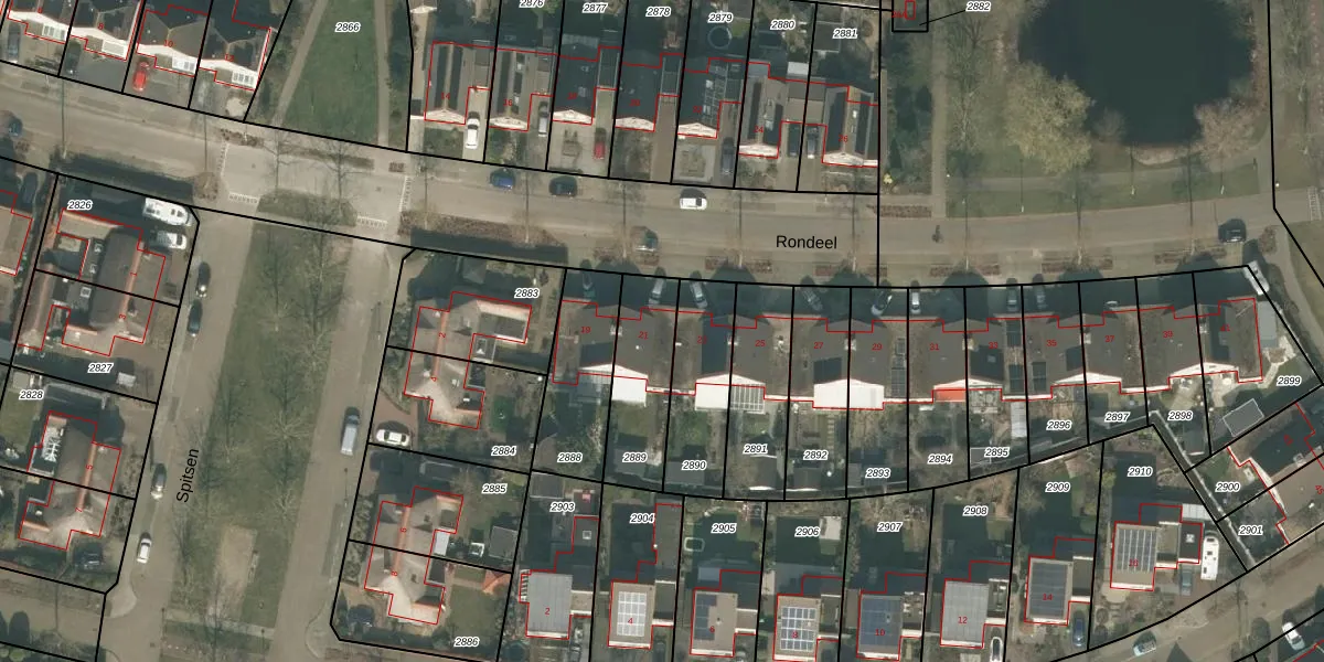 Het perceel waarop Rondeel 21 staat heeft een oppervlakte van 285 m². Dit is een middelgroot perceel. De perceeloppervlakte wordt geregistreerd door het Kadaster. Gedetailleerde informatie over de maten van dit perceel kunt u vinden in het rapport Kadastrale kaart met maatvoering van Rondeel 21.
