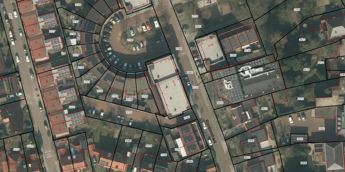 Het perceel waarop Rooijsestraat 61 staat heeft een oppervlakte van 631 m². Dit is een groot perceel. De perceeloppervlakte wordt geregistreerd door het Kadaster. Gedetailleerde informatie over de maten van dit perceel kunt u vinden in het rapport Kadastrale kaart met maatvoering van Rooijsestraat 61.