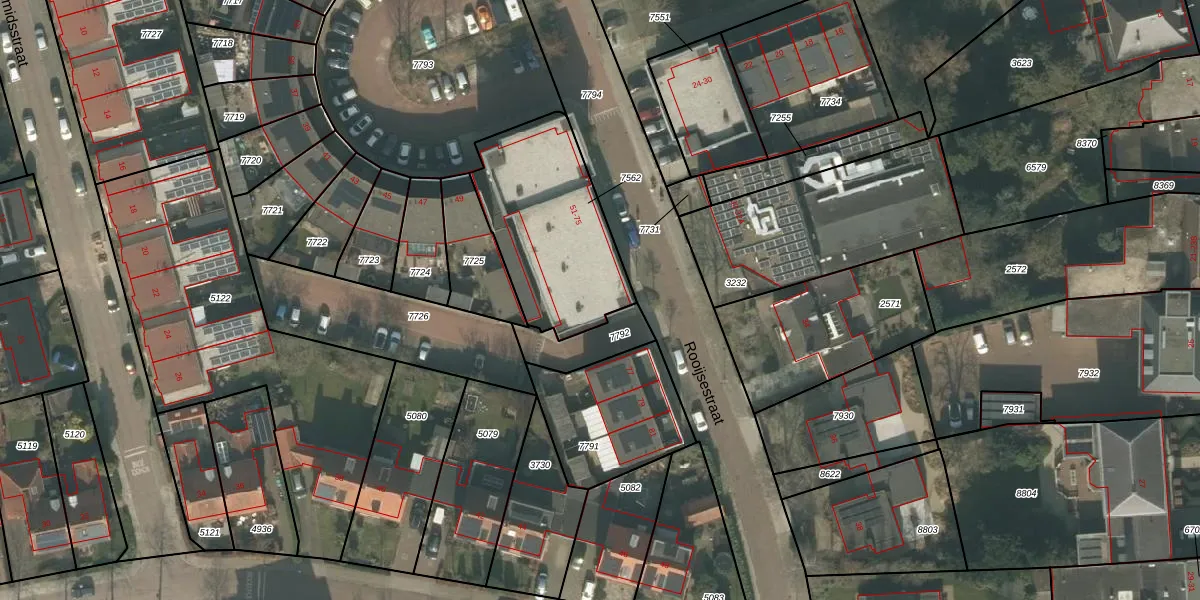 Het perceel waarop Rooijsestraat 65 staat heeft een oppervlakte van 631 m². Dit is een groot perceel. De perceeloppervlakte wordt geregistreerd door het Kadaster. Gedetailleerde informatie over de maten van dit perceel kunt u vinden in het rapport Kadastrale kaart met maatvoering van Rooijsestraat 65.