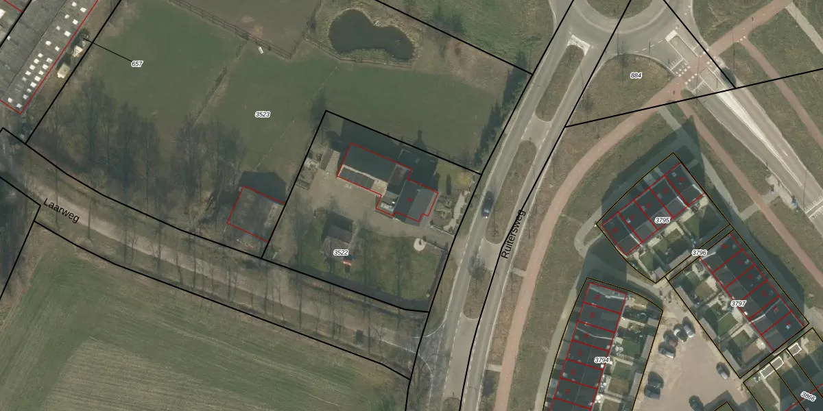 Ruitersweg 8 is gelegen op kadastraal perceel UDN00P3522. Deze kadastrale aanduiding is uniek en wordt gebruikt door het Kadaster om eigendomsrechten en andere zakelijke rechten vast te leggen. Het perceel maakt onderdeel uit van de kadastrale gemeente Uden.
