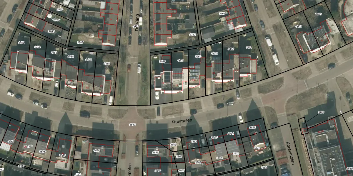 Gebruik de zoekbalk of klik op een perceel voor informatie over de adressen binnen dit perceel.