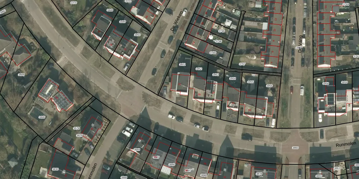 Het perceel waarop Runmolen 31 staat heeft een oppervlakte van 374 m². Dit is een groot perceel. De perceeloppervlakte wordt geregistreerd door het Kadaster. Gedetailleerde informatie over de maten van dit perceel kunt u vinden in het rapport Kadastrale kaart met maatvoering van Runmolen 31.