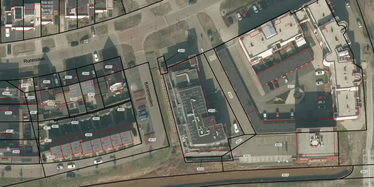 Het perceel waarop Runmolen 46 staat heeft een oppervlakte van 1503 m². Dit is een zeer groot perceel. De perceeloppervlakte wordt geregistreerd door het Kadaster. Gedetailleerde informatie over de maten van dit perceel kunt u vinden in het rapport Kadastrale kaart met maatvoering van Runmolen 46.